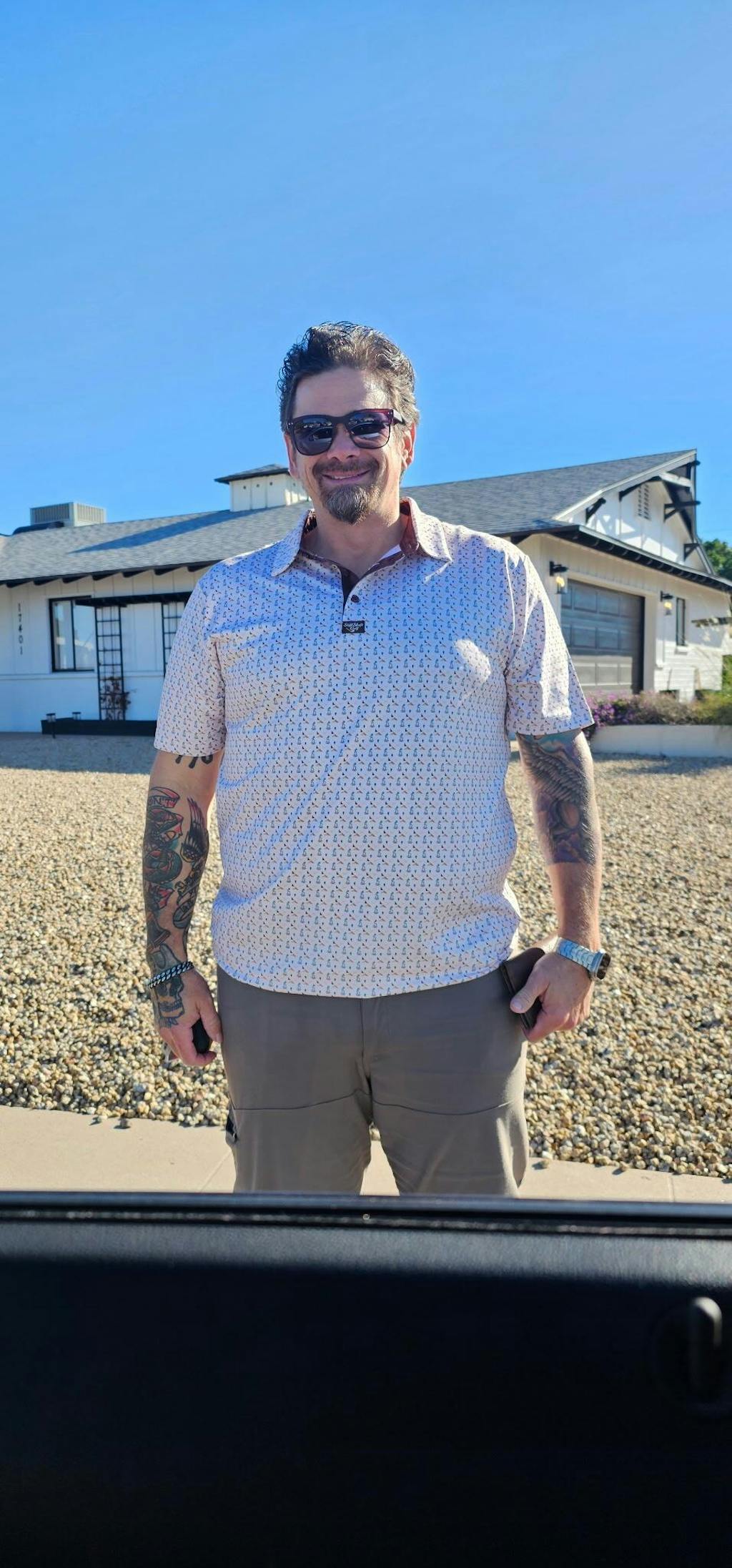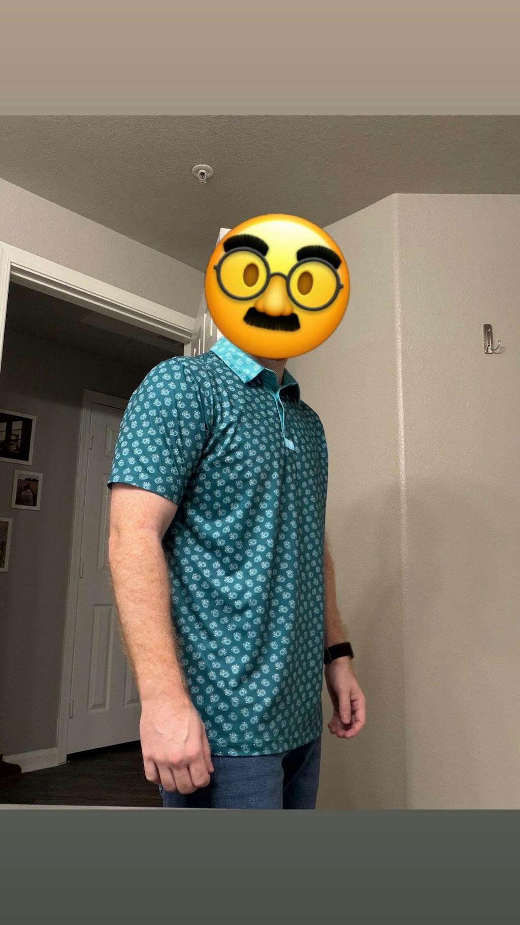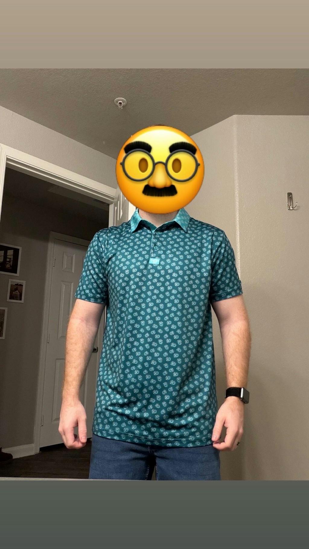 Didn’t expect to like this shirt this much. The pattern looks even better in person — super clean but still stands out. Fit is athletic without being tight, and the material is light and stretchy so it’s perfect for hot rounds. Got multiple compliments the first time I wore it. This one’s staying in the regular rotation.